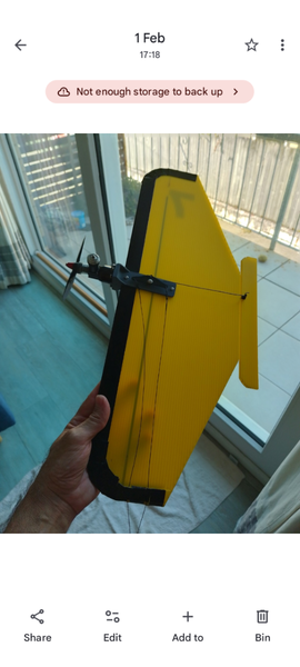 danny_galaga Posted 8 hours ago Author Posted 8 hours ago As promised, the beginner class 1/2a combat model made from core flute. The only part that is glued is the lead out guide. Engine mount is 3D printed and attached with three screws. I couldn't easily find a glow clip to suit Cox. On Lucky Lil 7 I just used alligator clips because that version is beam mounted so was easy to just clip onto an engine mount bolt. So I decided to channel the olden days and made one from a clothes peg 😊. Didn't have any handy sized wire kicking around so will finish it off during the week. 2