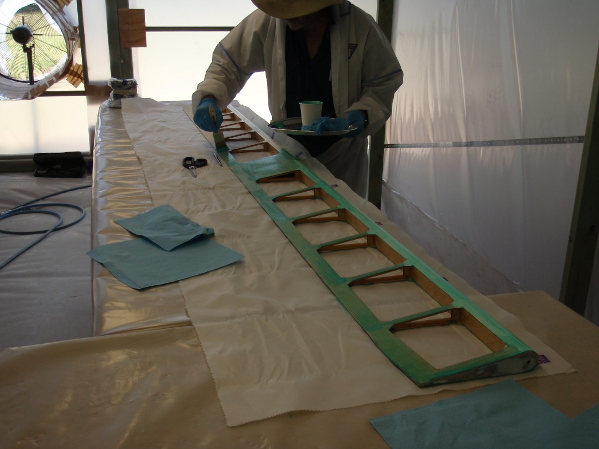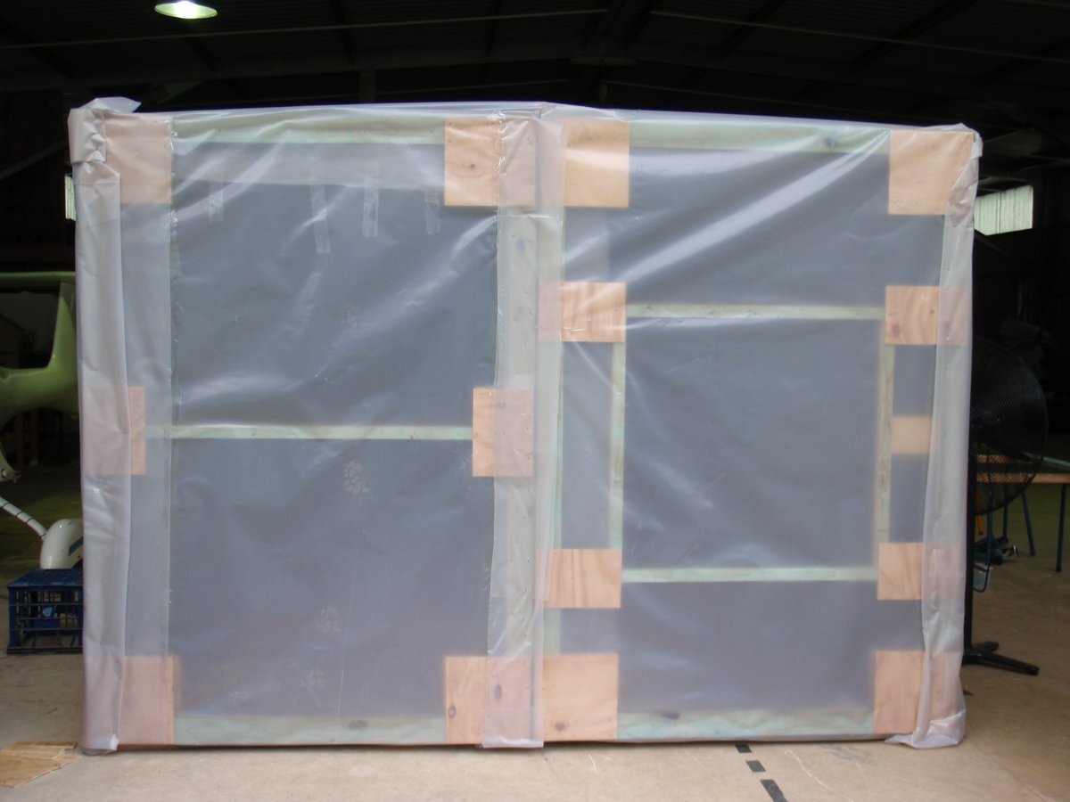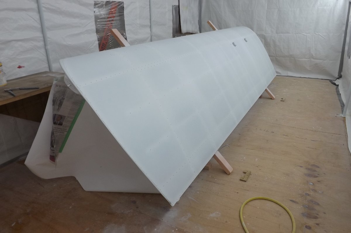 IBob Posted Tuesday at 08:29 PM Posted Tuesday at 08:29 PM Hi Marty, I have very limited spray painting experience and set about it with real trepidation. I managed to get a good finish, though I did have to wash off one wing side that went on too dry. My setup was as follows: A Supercheap car parking tent set up inside my workshop, with the bottom edges duct taped to the floor. At the far end, two 150mm domestic extractors (as used in kitchens and bathrooms). These had no ducting, went straight out through the tent and (ply) workshop wall. The pilot who donated these had used them with a long length of ducting and said they were useless like that. I had no trouble, so I think it's worth noting that spiral ducting may greatly reduce airflow over any distance. I painted in winter, so at the near end I had a hole in the tent where I placed an oil filled radiator. I would turn on the fans, which provided a very gentle airflow, turn on the radiator and watch the temp rise in the tent where I had a cheap thermometer. When the temp rose to about 23' I would suit up, turn off the radiator, go in and mix the paint and spray. The temp would continue to rise a bit due to the residual heat in the radiator. For lights I had fluoro strip lights all down one side , with DIY foil reflectors behind them. I thought this would be more than enough in a white tent, but it wasn't. The only way you can see how you are doing is from the reflection of bright light in the surface, and to get that without having to walk round the job and view it at various angles, you need lights on all sides. Simply put, you can't have too much light. I made simple tilting mounts for the wings so that the surface was angled towards me at about 45'. This is a big area to spray, and I found it far easier to work the gun with the job tilted towards me that way. I did not have the confidence to spray both sides , so the wings were each done in two sessions, one side then the other. I partly rotated the fuselage for the same reason, and that was painted in 4 sessions. I found with the colour on the fuse it was really easy to see the finish, compared to the white on the wings etc, where I had to paint then walk round the job squinting at odd angles to get a good reflection. You haven't got much time to be doing this, and the less you move around the less dust you disturb. For all the smaller parts, empennage etc, I also went to some trouble to set them up so I wasn't trying to use the gun at odd angles. 5 2 1
