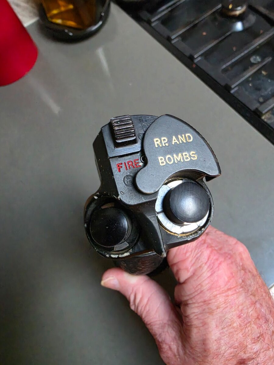 onetrack Posted 13 hours ago Posted 13 hours ago (edited) Ian, it's a control handle from a Gloster Meteor F8. Scroll down the page below for more photos. https://www.historicflyingclothing.com/en-GB/raf-aircraft-parts/gloster-meteor-f8-control-grip/prod_21647 Here's the Gloster Meteor cockpit photo. Edited 12 hours ago by onetrack 1