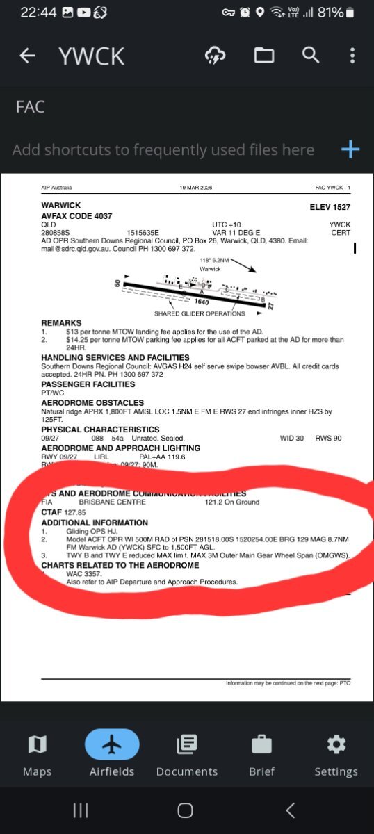 Blueadventures Posted 18 minutes ago Author Posted 18 minutes ago Thankyou for the detailed examples, very helpful and very appreciated. I'll pass on to our flyers at Palmyra who have been asked to comment on the matter. I hadn't thought about ERSA as the area is south of Mackay Airport at the northern end of the town of Sarina. Cheers Mike