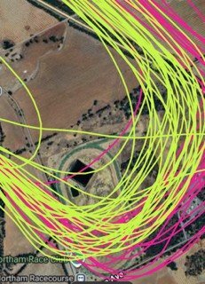 I did get to training this last Saturday and Sunday but not everything went to plan. After sitting on cruise at about 115kmh for several hours Friday I pulled up in Wongan Hills to boil the kettle. The Hyundai iLoad was running well as usual until halfway between Wongan Hills and Northam, the airport, I had to stop for roadworks and there was an awful rattle coming from under the bonnet. It was only at idle, as soon as I touched the accelerator the engine ran smoothly so I just reduced my speed and continued on the Northam. Once there I lifted the bonnet expecting to find the noise coming from the timing chain at the front of the engine. It was not. The heavy metallic noise seems to be coming from the rear of the engine and the engine shakes quite badly at idle but runs smoothly with light acceleration. It seems like a loose flywheel or clutch. It can't be gearbox because I can stop that rotating by selecting a gear with the clutch depressed, that makes no difference to the clatter. One thing that springs to mind was a similar experience with a 6.5L GM diesel many years ago. You'd have sworn the engine had blown up, the owner did and it was near new on warranty. Upon inspection the fix was as simple as replacing one fuel injector. Of course these engines are altogether different but the heavy metallic knocking was similar. One difference is that the 2.5L common rail diesel Hyundai only rattles at idle. Anyway it stuffed up my flying lessons to some extent. I was meant to do a little work on my plane Friday and then make my way to Serpentine airport for a 4:30am start on Saturday. We'd planned to fly the Jabiru 160 from Serpentine to Northam for circuits etc. Prior to take-of we'd do the preflight W&B and flight plan, another stage of training. It didn't happen because I couldn't drive the Hyundai any further. We commenced circuits as soon as the Jabiru arrived at Northam at 5:50am in cool calm conditions. I hadn't been up since April and it seemed like I'd never learned to land a plane. My landings were all over the place. Some too high, some too low, some too fast, some too slow and some simple to crooked to land properly. I didn't track the Saturday morning's flights but the pink track was some of the afternoon. The yellow was Sunday while I was still in the Jabiru instead of in my Sportstar where I was meant to be by then. I did repetitive circuits sorting out little problems one at a time. I'm wasting my time trying to get everything right together. I had to sort out the best way to handle the stupid electric flap switch that is located forward and right of centre. I can't use the right hand because that is on the stick so the left must reach across beyond the centre of the panel and the process from one stage of flap to two takes a good five seconds. Last time I chose to only use one stage of flap but I had to get it right this time. Then there were all the other little things like holding a steady 1000' while turning, using the radio, setting the trim, going through the various checks etc. In general I was all over the place. We did some stalls, emergency landings, steep turns etc to help break the monotony and that helped but in the end the biggest challenge was to get a string of neat successful landings before going solo again. I didn't achieve that until after the first five hours of Sunday but I managed 1.1 hrs solo instead of the 2.6 that I needed. The Sportstar was difficult to start, perhaps the 12 month old fuel is the problem. It runs well once started but getting it to fire the first time is difficult. My trainer was meant to take it up for a test flight and then I was to spend some time in it as well. As it worked out he realised he couldn't fly it anyway because he hasn't got his variable pitch prop endorsement. Hopefully that will all be sorted out next weekend. I have to go back anyway with a trailer to retrieve the Hyundai. We just got home just after dark tonight. Weather permitting we're back into it on the coming Saturday.6 points