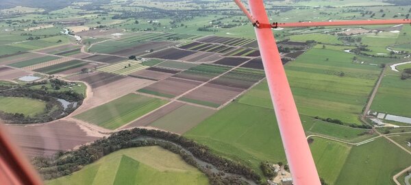 I flew from the Murray River to the Hunter Valley around a week ago. The ‘green’ didn’t start until north of Wagga. Lots of crop failures in Victoria this year and a dry spring knocked yields around in parts of central western NSW. For those that know the area, north of Dubbo the crops were pretty good. i think these pics were near Cootamundra, but I wasn’t the photographer.8 points