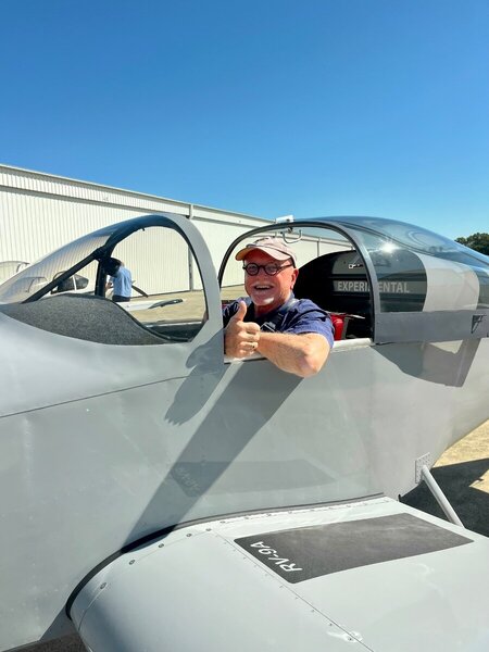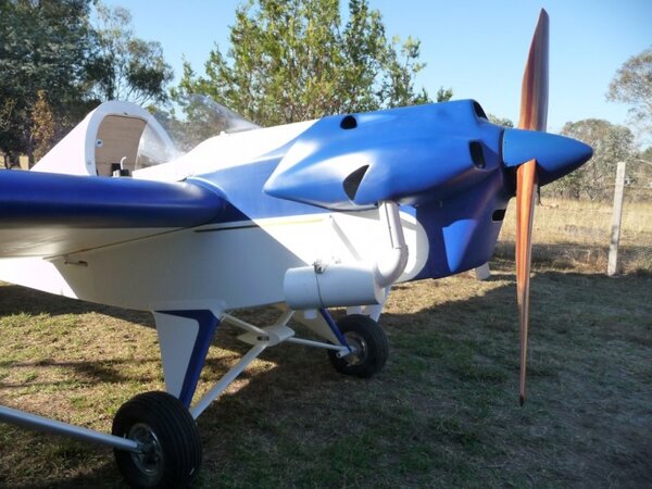 Onex VH BHU took to the sky yesterday with test pilot Chris Kelly, and again early this morning with me at the controls. 3 years since ordering the kit! Over controlled it enormously on take off, stick forces are so light it is amazing. Took it up to 3000 ft and ran it hard then eased back for some slow "approach speed" runs with 1 and the 2 stages of flap then some gentle turns, climbing and descending and straight and level, topped out at 120 knots IAS, 14 degrees OAT. Landing view is different to say the least and just touched tail wheel before the mains. Great machine, well balanced, will not need any trim tabs, flies with 2 fingers on the stick. To say I'm delighted would be a huge understatement. Peter23 points