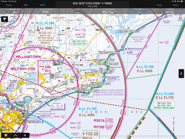 Hi…. I’ve been using both…. Pilot works so well and easy with upload and changes on the fly…. Picks up waypoints so I just bit the bullet and do all my planning in OzRunways, submission, height, maps etc and then just duplicate it in pilot10. It probably takes me an extra 5 or 10 mins max… any change in flight I do in pilot but other wise it’s pretty easy and quick. The only thing is that pilot won’t send heights to the g3x… but that’s fine. And also you can’t seem to send the information to a printer…. Another plus for OzRunways. OzRunways has just done an upgrade and it has some great vfr/ information included.. I know you can send files from OzRunways onto a usb and then upload… but really. …toooo much mucking around it means two costs but in the scheme of things it’s only once a year. the link between pilot and Garmin products is seamless…. Simple as click and send the image was from Taree down to Newcastle and back to Maitland along the coast…. Pretty specific on heights and waypoints have to be spot on…. Turned when it had too and I got to have a look at the scenery ….within reason 🙂 -
