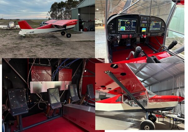 Aircraft 2 has the engine mounted and avionics are near finished. Nic is a work maniac as I think I’ve mentioned. I have to get down to hangar by 7am or he’s beaten me to it. I take a break at lunchtime and a little siesta then comeback and often Nic is still there and worked through. I don’t think he’ll be back for the more mechanical stuff and he’s a bit over the avionics and just wanting it finished. Still, I appreciate the help and very grateful he’s giving me time. Deb is top left. She’s lost 50lb last 4 months (American so she loses lb’s). Only started flying with me recently and happy to come into Tyabb but not so keen on the island runway landings between trees, birds, cows and the uneven ground. She’s surprised herself by looking forward to the Rans being finished and going on adventures. It’s heaps more comfortable than the RV. The seats are like armchairs in comparison and the big tyres make my runway feel smooth. Those things along with the slower landing speeds will really help her confidence in flying with me. Job today is antennae’s so Nic doesn’t run out of things to do. Then onto wiring the light speed ignition in. After that the big jobs are wings on (we learned from first aircraft… don’t put the wings on early. They are just in the way) then skylight, windscreen, prop and engine cowl. After that it’s flying and trying to keep up with Nic.