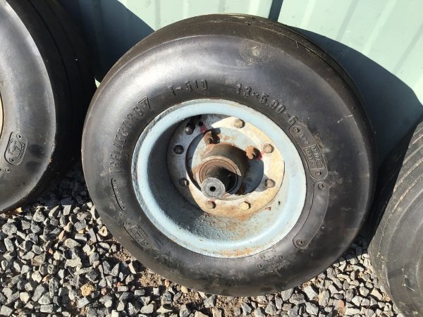 SAJ, I’ve got 4 rims. Steel split rims with nuts and bolts and reinforcing plates for 3 of them. Other one is missing inside bolts. Three of them are fitted with Trelleburg tyres (one still new) . Still all got tubes in them which must be good as they’ve stayed up for a couple of years. Last one has Kenda tyre in very good condition. All tyre sizes are 13x5 x 6. is that the right size for yours? Someone said you need small wheels? Anyway, give me a call on 0400004011 if interested. cheers, Jenny