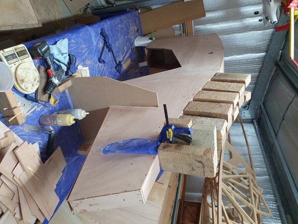 I've actually completed the fuselage already (five days of building, and about 20 hrs of actual construction) the rest of the time was spent waiting for epoxy to cure, and on the computer finalising the wing design. However, I can't find a way to rotate the images on this forum. If someone can help me out with this, I'll post the remaining pictures. The forum seems only to like landscape oriented photos, and most of mine are in portrait. That's a pity.