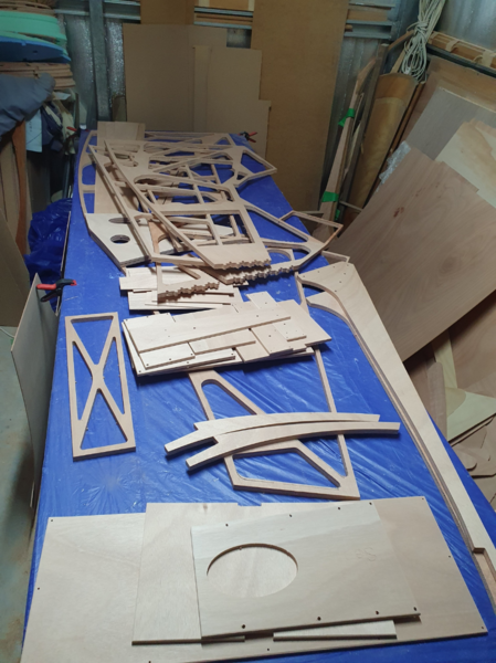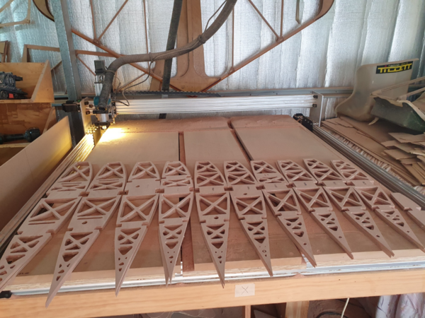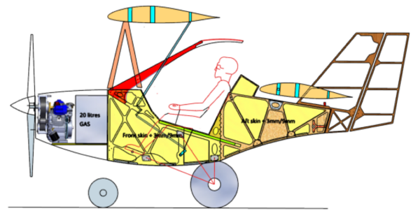 The airframe consists of CNC-cut Gaboon ply with a 3mm Gaboon skin. Having a cnc-router helps, of course.