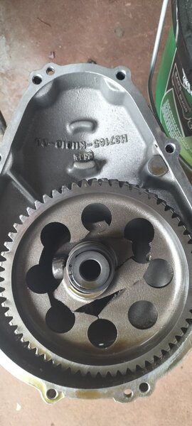 4. tryed to turn over the hks today and it was locked solid. seems it came out of a wreck i thought i better pull the gearbox and have a look. its not too healthy. broken reduction gear. interesting thing is it has a slipper clutch, didn't save the gear though.
