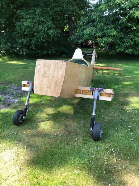 She has wheels! Maybe held on with clamps, some bolts are the wrong length and I know it’s the wrong stub wing rib but….. she has wheels! Not long now before I can sit in her and make silly aeroplane sounds!