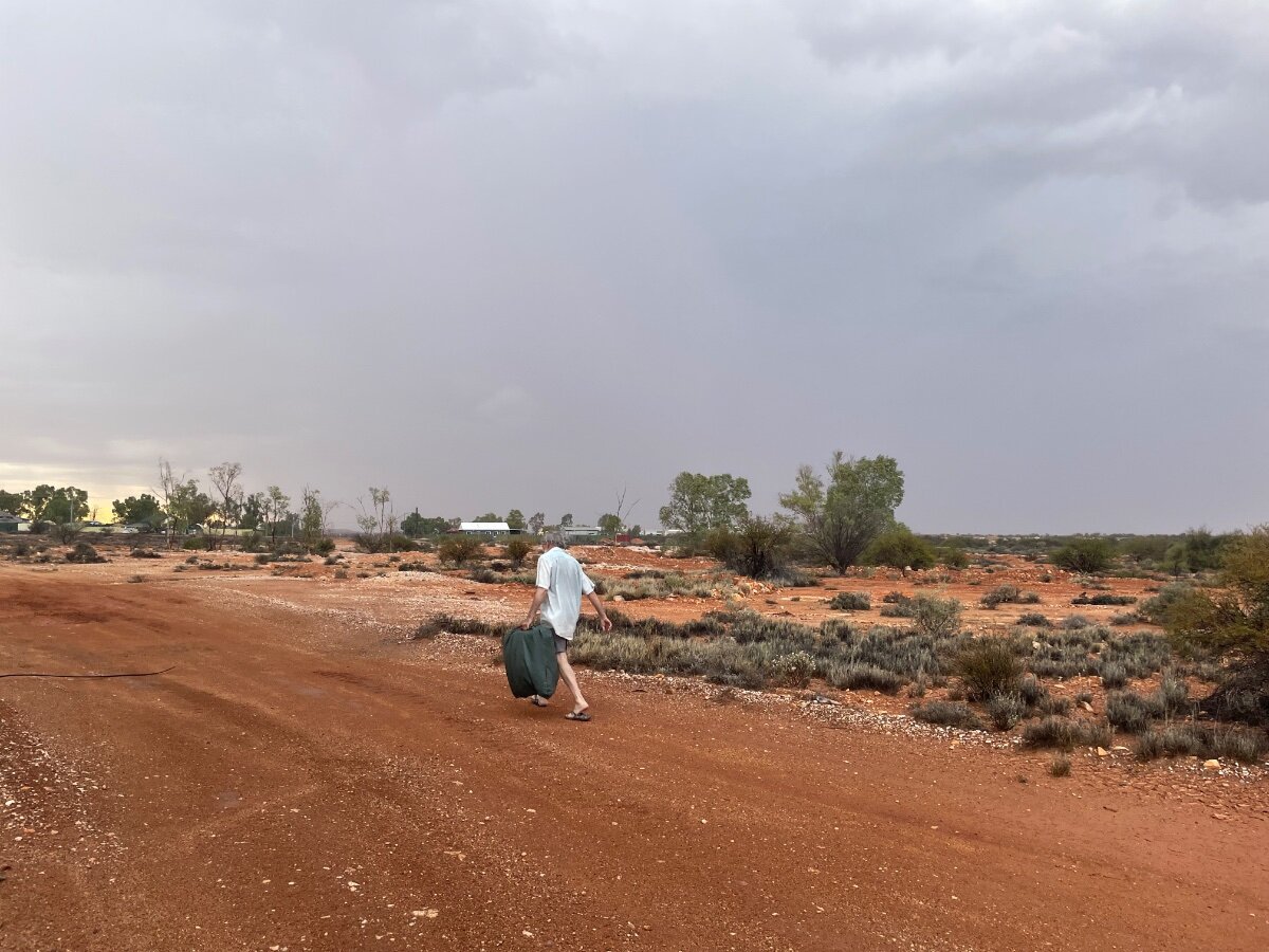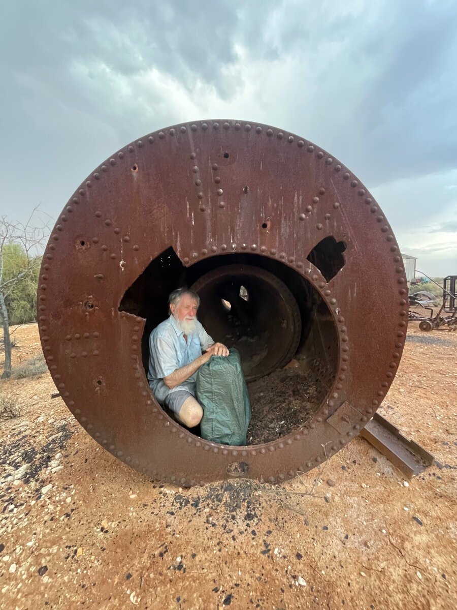 We got caught in the rain so we dived into an old boiler until the worst passed.