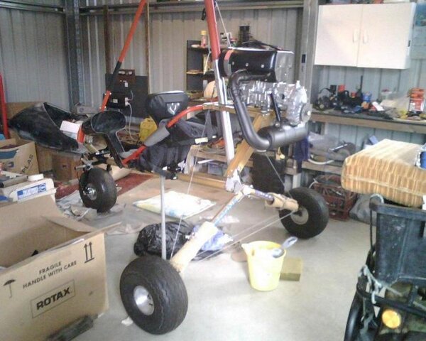 1. Hi SD, Thanks for your words of encouragement.:thumb_up: There seemed to be no shortage of threads of people building their own 3-axis ultralights, but no one building a trike and I'm happy to be the first on this site to put a trike building project into a thread. Speaking with Airborne yesterday, they suggested I bring the Buzzard back to the factory before I cut any metal. I've emailed them the 3 photo's in my previous post. I have to take it there to get new rear suspension bungees fitted anyway. Still don't have a wing for it yet but have been told by Airborne that the Arrow-II wing is actually is an Airborne wing (Moyes sail on an Airborne wing structure) and it is a trike wing, not an adapted HG wing. So I'll collect the Arrow-II wing that was offered with the Buzzard and see if Airborne think it can be salvaged with an overhaul. (Yes I have a GRS on my XT, and will be putting it on the Buzzard) Cheers, Glen