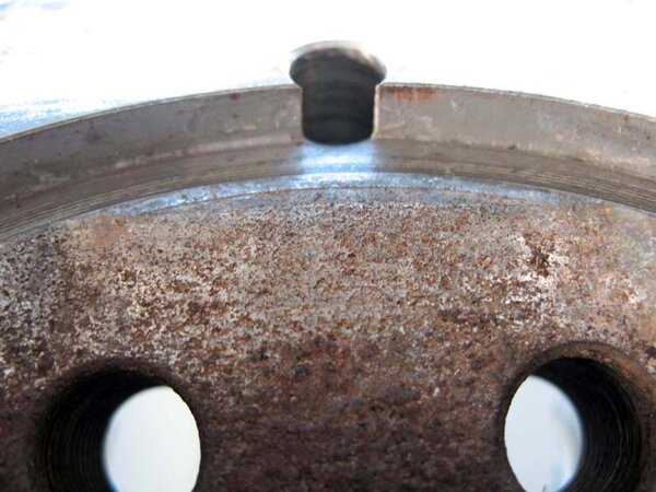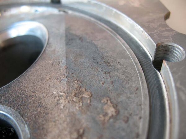 I've asked plenty of questions of late, and added little. Thanks for the helpful comments from members of this board. All have been very helpful in the top end rebuild process I am now near completing. I thought I'd post a few photos of the flywheel spacer modification I have used. In short, my assessment is that flywheel bolts break because the 'friction joint' between the crankshaft, the ali spacer and ali 'flywheel' gets loose and the bolts subsequently get stressed and break. Maintain the friction between the parts by maintaining bolt preload and the problem is solved. Dowels won't stop this from happening. The new steel centred 'starfish' flywheel on newer engines removes the relatively soft aluminium centre which the flywheel bolts tended to recess into, losing their preload and loosening the sandwiched parts. Old flywheel centre is pictured below with Unbrako 5/16" 1-1/4" long cap screws tighened up against the ali flywheel. Two were loose, and all were recessed into the flywheel by up to 0.3mm. I machined up a steel replacement spacer, but dispensed with the vacuum drive extension. I also machined a 4.5mm steel disc, and replaced the bolts with ARP brand 5/16" 1-1/2" long bolt (to counter the new compression disc and provide a few more threads into the crankshaft). The crank bolt holes were cleaned out and checked for adequate depth. Replacement steel spacer with compression disc and new bolts The aluminium flywheel is now sandwiched between two steel discs. The bolts are spec'ed to to tightened up to 50+ft/lbs into steel. We settled on 45ft/lb as a compromise figure. With the vacuum pump drive no longer sitting in the hole in the alternator spider, I can use a mirror to check the witness paint on the bolt heads during regular inspections. This idea was developed by a local Jab owner who generously spent many hours with me going through the rationale for why these bolts break and how he thought one could prevent it - basically get rid of most of the soft aluminium in the sandwich of parts. We'll see how things go... Greg v