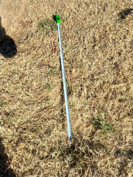 Yes, but not on the taxiway I described above. It was on the original taxiway at the point indicated by the arrow. There was a enclosed drain under the taxiway made up of short lengths of concrete pipe. In several places the top of the pipe had cracked and the soil on top fell through, making a hole. The whole aerodrome had been slashed not many days before the incident and cut grass was laying over the hole. It was impossible to see any hole, even when walking on the taxiway. What made matters worse was that a con marker had been placed over the end of the pipe, so you didn't even know there was a pipe there. For the pilot it was an unavoidable accident. The taxiway was closed off at that end, and the aerodrome owner had a crew dig out the pipe line a few days later. This shows the hole (at the start of the tape measure) and the point where the prop hit the ground (at the case of the tape measure) You can see for yourself that it would be impossible for the pilot to see that hole. -