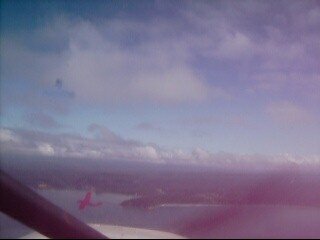 4. G day all, I wasn't quite sure where to post this, but its too good not to share. I went for a flight along the coast yesterday, only recently having attained my pilot certificate. The scenery along the coast is stunning and I had my very cheap and nasty digital camera with me so I thought I would attempt to snap a few pictures. Being a bit of a newbie I didn't want to become distracted by operating the camera so I held the camera and randomly clicked off a few pics. Somehow the camera got switched to its video mode. I held the camera up high to take a picture through the windshield. Having taken a few pictures I put the camera away so that I could just enjoy the flight. Back on the ground and sitting in my usual after flight coffee shop I scrolled through the pictures on my camera and came across the first frame very short vid, taken through the front of the aircraft I was confronted with a sight that almost made me spit my coffee across the coffee shop. :ah_oh: In the bottom left corner (see pic attached) there appeared to be an aircraft shaped image, now you have to remember that this really is a nasty cheap camera with a very small LCD display. I was stunned, could I have been involved in a near miss? I was sure I had kept a good lookout. I decided that it wasn't another aircraft but I couldn't come up with any other explanation. The only thing to do was to race home and upload the image to the PC so that I could enlarge it. I could see straight away that it was not another aircraft but I couldn't work out what it was, suddenly it came to me. Some of the instructors at our club get the students during the first lesson to place a small marker pen cross on the windshield to mark the horizon in level flight, because I held the camera up high the cross appear quite low on the windshield.Mostly these crosses get cleaned off. I am used to this cross being there and I don't even notice it any more. I am not sure whether there is a moral to this story but I did find it alarming then amussing:big_grin: