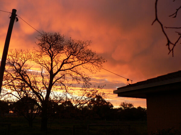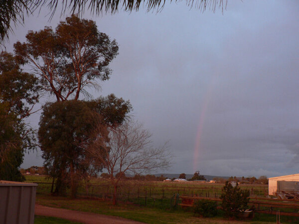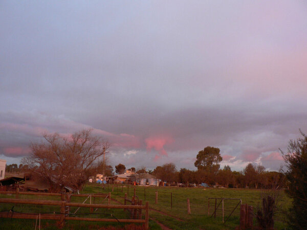 8. Hi Crew A strange weather day today with a strange mass of unstable air floating around from Narrandera to Leeton with only Narrandera and Yanco reporting any rain, 0.4 and 1.4 mm respectively, within 100 miles or more. Brobenah airstrip would have got a few more mm late in the morning. Photos taken on sunset with very light rain and a light rainbow on the east side over the Brobenah hills near the airstrip and a classic sunset on the west side. All photos taken in about a five minute time span. The fourth photo has some birds heading for the river at last light approx south west of our house - probably well over the middle of Leeton at that stage. [ATTACH]3321.vB[/ATTACH][ATTACH]3324.vB[/ATTACH][ATTACH]3325.vB[/ATTACH][ATTACH]3326.vB[/ATTACH][ATTACH]3322.vB[/ATTACH][ATTACH]3323.vB[/ATTACH] Regards