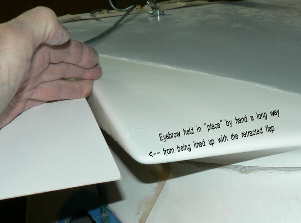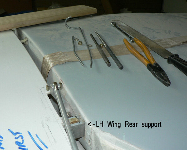 6. Wings continuued 24-08-2007 Fit flap to RH wing on A/C. Connect up flap lever system to flaps. Check flap rods for clearance on top of inboard end of wing and adjusted as necessary. Flap actuating rod between flap handle and flap cross over shaft shortened about 10 mm so that flap lever can be put in neutral position when the flap is connected. A flat edge under the wing from leading edge of wing to trailing edge of flap should have 4 mm gap near the junction of the flap & wing when the flap is in neutral position. In these photos it is close to that position in the "flap up photos". Photos around RH wing & flap in up & fully deployed positions. [ATTACH]3354.vB[/ATTACH][ATTACH]3355.vB[/ATTACH][ATTACH]3356.vB[/ATTACH][ATTACH]3357.vB[/ATTACH] Flap up photos [ATTACH]3360.vB[/ATTACH] [ATTACH]3358.vB[/ATTACH][ATTACH]3359.vB[/ATTACH] Flap down - deployed photos As pointed out by Geoff Waddleton I should not have fitted the eyebrows on the fuse abeam of the flap position until the flaps are fitted and set in their correct position. I have only done one so far & I kept it in line with the top of the wing but it is the flap that it should line up with so a bit of radical adjustment is needed here. 23-08-2007 Fit RH wing to AC 22-08-2007 Build castoring table to support wings during connection of wing to aircraft. 20-08-2007 Clean up microball fill on wings Check & mark position for stall warning on port wing and drill hole inboard end for air hose to stall warning horn very carefully as there is a danger of drilling into fuel tank. Check position of fuel tank before drilling. 10-08-2007, 11-08-2007 A couple more sessions done on filling rough areas of wing tips mainly with microballs.