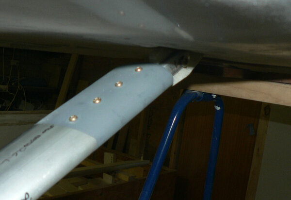 3. 28-08-2007 Put shelves in castor wheel bench. Put most commonly used tools under the bench together with fasteners. Turned A/C around in garage ready for mounting Port wing. [ATTACH]3406.vB[/ATTACH] Trimmed the the top inboard end of the LH wing to make clearance for the flap actuating rod. Sat LH wing on moveable bench near the balance point and trestle etc on inboard end to raise it close to the height of the mounting points on the cabin. [ATTACH]3408.vB[/ATTACH][ATTACH]3407.vB[/ATTACH] The top inboard wing attachment bolts were tried in their positions and found to be too tight. So they were polished down to fit the lugs on the wings and the cabin. Used bent wires in the photo instead of bolts to make the initial connection between the wing lugs and the cabin lugs. Next replace one of the wires with the podger (tapered punch) to get a closer alignment. Then replace the other wire with an AN174-14A bolt and may have to loosen or remove the podger to allow the bolt to line up with the wing SS bush hole and the cabin lugs. As the alignment of the SS bush in the fibreglass lug on the wing was a bit off at this stage I stopped trying to attach the wing. I then heated this SS bush in the wing lug and continued the attachment. [ATTACH]3410.vB[/ATTACH][ATTACH]3411.vB[/ATTACH] Each bolt may have to be inserted in its heated SS bush with the other bolt not inserted. Once the bolt is inserted, the wing can be pulled around to line up the other bolt holes if neceassary and the podger inserted to hold the position until the bush and fibreglass cools down to hold the bush in alignment. Once the first bolt is in & the bush set in an aligned position remove the bolt and heat up the other bush and get its bolt inserted. Once the second bolt is in push the wing around to line up the other holes and then insert the first bolt again. Allow the second bolt & bush to cool down now that all is aligned for that top inboard wing connection. Both bolts were checked for ease of removal and insertion. If they were still too tight they could be improved by application of more heat to the SS bushes and the reassembling the connection. Fitted the flap and ensured there was clearance for the flap rod - unfortunately am short an AN3-14A to make the final connection to the flap. [ATTACH]3413.vB[/ATTACH][ATTACH]3409.vB[/ATTACH] A similar procedure will happen for the LH wing strut.