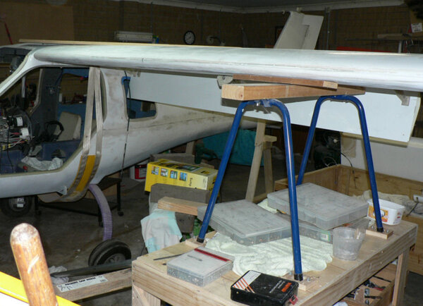 18. 16-07-2007 I have an excuse visitors for the last two days. Were going to have a fly at Narrandera on Sunday afternoon but Wally had an early nav ex planned for a student and the fog did not lift till about 12:00 so that moved my 15:00 time slot to never never land!:confused: Doing more cleaning up on RH & LH wing. On the RH wing the trailing edge on the RH wing in the flap area had not filled completely between the two layers of fibreglass. So I sanded off the bottom layer to make the edge more tapered and then filled it with epoxied microballs which is very easy to dress with any tool. Draw strings reborn[ATTACH]2598[/ATTACH] Nice & warm under the sheet [ATTACH]2599[/ATTACH] Garage temp this morning was 8.6 degrees C. Max outside Sunday 8 degrees, min 3 degrees
