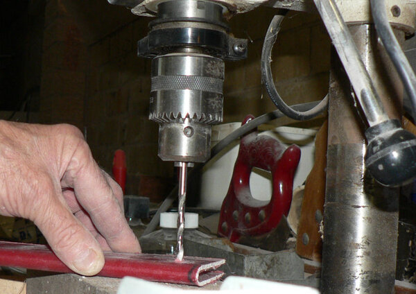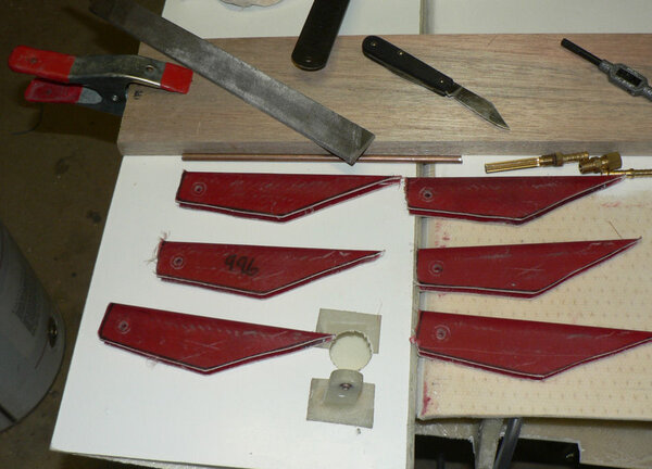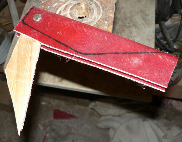 [ATTACH]1992[/ATTACH] Drilling flap support brackets to take AN3 bolts (3/16") [ATTACH]1993[/ATTACH] Bolting flap support bracket with temporary wooden spacer to work bench steady ready for trimming by jig saw. [ATTACH]1994[/ATTACH] Trim flap support brackets with jig saw [ATTACH]1995[/ATTACH] Trimmed flap support bracket [ATTACH]1996[/ATTACH] Flap support brackets for two wings [ATTACH]1997[/ATTACH] Cut steel flap bushes from 1/4" Bundy steel tubing 2 mm longer than than SS bushes in flap supports. [ATTACH]1998[/ATTACH] Bundy bush inserted into flap support bracket SS bush after reaming to fit with total of 2 mm extrusion [ATTACH]1999[/ATTACH] One of three wooden supports for each flap before attaching flap support brackets and inserting temporary 2 mm spacer between wing and flap.