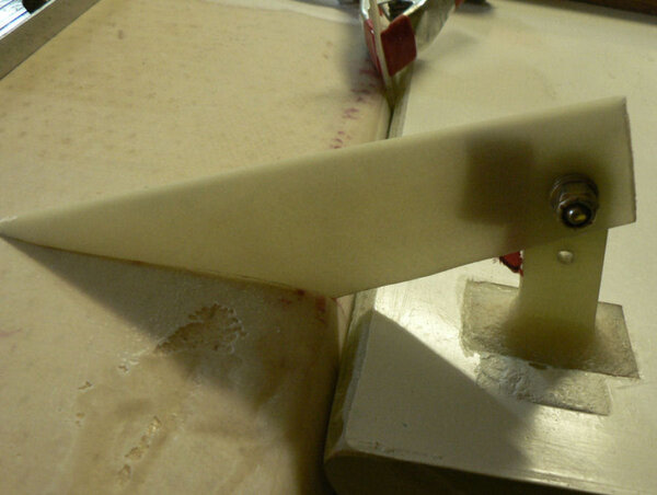RH wing Aileron base The RH aileron base was cut to match the recess precast for it in the outboard rear end of the RH wing so that aileron when mounted with hinges on it will be aligned with the trailing edge of the flaps. [ATTACH]2011[/ATTACH] Two sets of premoulded fibreglass reos that are part of the reinforcement to be used near each of the aileron hinges [ATTACH]2012[/ATTACH] The aileron mounting plate is supported by the wood sheet so that it is held up above the wing recess filled with epoxy & flock. Each of the three hinge positions will have a premoulded fibreglass reinforcement plus two lots of reinforcement.
