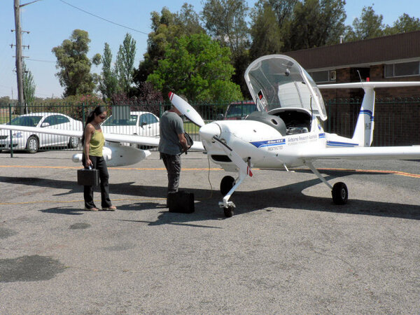 11. Hi Crew An unusual sight a motor glider from Flinders University at Narrandera aerodrome doing research on water use by crops in the irrigation areas near here and elsewhere and also on dry land crops. The pods hanging underneath the wings have terabyte storage capacity in their hard discs and they land periodically to download the data. They have been to selected sites all over thr MIA and around Wagga and further south. Sounds like the South Australians are getting ammunition for the more water for Adelaide argument. They were staying at Yanco Agricultural Insitute while they were flying out of Narrandera. Regards Ross