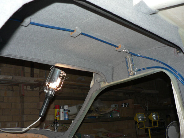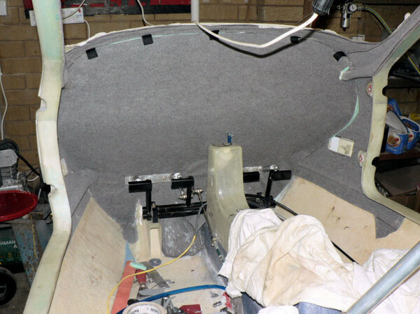 Hi Clem Mainly the blimpwould not come close enough. I was contending with houses, trees and powerlines to get that last shot. This morning I discovered our tarpaulin manufacturer in Leeton stocks Velcro and a limited amount of felt. As well as that I got more carpet tack goo from the local furniture and carpet shop this morning. So I was able to make up covers using felt a bit heavier than I wanted with Velcro zipsfor the fuel lines on the J160 today as well as doing the last of the screen side and top felt cabin liners. :big_grin: So it was a reasonably productive day compared to some. But it did have a bad start as I put my fingers into a tin full of pens and pencils to extract a rechargeable battery (the clock in my office had stopped) only to slice open one of my fingers next to the index finger on a very sharp razor blade in the bottom of the tin. It kept getting acetone (and my attention)on it during the day! Tomorrow I will get to lining the luggage area. I have changed the position ofthe power unit for the flasher to behind the pilot seat on the fuse wall. Regards