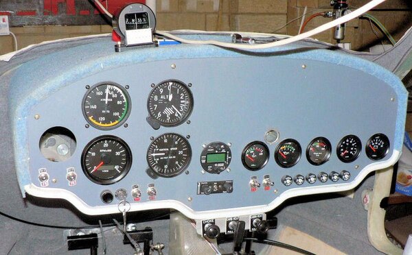 Hi All Did more work on panel over weekend. Got the battery installed and hooked up to an negative earth strap on the stainless steel firewall and to the positive starter motor solenoid on the firewall. Because I have mounted the switches and circuit breakers close to the bottom of the panel I had to trim a lot of material from the fibreglass panel edges. The large size of the supplied switches does not help.There are a number of safer types on the market so that you don't end up with the possibility of a switch knob embedded in your skull. See Captain's switches - loverley. The key operated solenoid to power the two positive panel busses is connected powering the main buss & the instrument buss. It works. I have previously tested the temperature gauges roughly using hot water on the oil temp and a heat gun on the CHT and EGT. The starter solenoid button works and is only live when the master switch is activated. The radio is wired up to power and the aerial but not the sockets for headphones yet. A temporary single socket with a small speaker plugged in shows that it is picking up traffic as far away as Bathurst and Dubbo plus Melbourne Centre - all this in my garage at Leeton under a tile roof and some close large gum trees about 70+ feet high! Electrical Still to do: Get some more 10 gauge wire! (my mistake) Replace some temporary wire with 10 gauge. Electric booster fuel pump to connect to panel. Probe power unit to connect to panel buss. Engine to reinstall but will probably leave till a bit more other work is done. Instruments to connect to engine. Earth carburettor to engine. Earth engine to firewall earth. Connect up ignition kill wires to engine. Connect alternator wires to panel. Regards