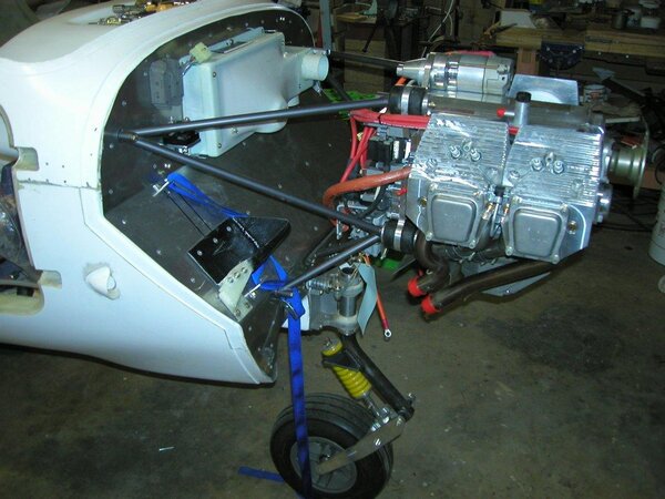 The firewall is fitted after I made a wooden folder to fold it in two places. The engine mounts are painted and fitted. The engine has been mounted a couple of times and a quick release G type clamp modified to facilitate compressing the engine mount rubbers while doing up the mounting bolts.