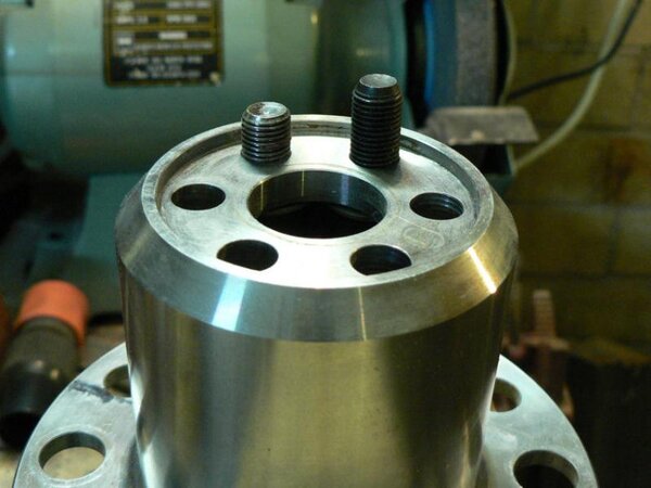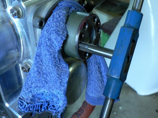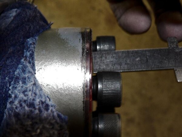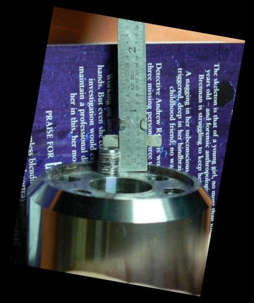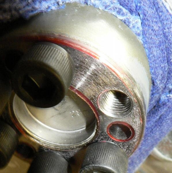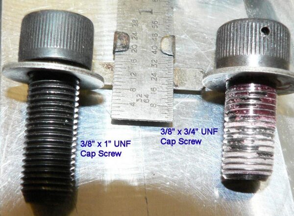 11-09-2008 Moved down to the other end of the A/C as the prop flange connection has been making me feel nervous. Removed the spinner and the propeller. Wrapped a cotton rag around the crankshaft just in front of the front crankshaft oil seal and soaked this rag with water to keep the heat from damaging the oil seal. Applied some heat to the outside of the prop flange. Then heated the cap screws from inside the front of the prop flange with the hot air gun until the cap screws could be loosened with a ratchet spanner plugged into the top of the cap screws. Tried small increases in heat until the screws would come out to avoid using too much heat which might damage the front crankshaft oil seal. Removed the prop flange which had 3/8" UNF x 3/4" long caps screws Loctited into the tapped crankshaft. Measured the thickness of the prop flange where the cap screws go through it, the length of the screws, the thickness of the Bellville washer used on the screw, the amount of lost thread in the top of the tapped hole in the crankshaft and the lost thread on the end of the cap screws. When you allow for loss of effective thread at the start of the tapped hole and on the end of the 3/4" long cap screw it is apparent that the amount of full engaged thread when using 3/4" long cap screws is marginally less than that set in the Service Bulletin JSB 022-1 dated 28th July 2008 for the "Propeller Flange Attachment". It quotes 9 mm or 0.354" of full thread engagement. The flange including Bellville washer is about 8.3 mm thick. Take that from a 18.7 mm long cap screw leaves 10.3 mm which looses about another 2 or 3 mm of effective thread putting it under the 9 mm set in the service bulletin Ran a 3/8" UNF Bottom tap into all six tapped holes in the end of the crankshaft to clean out the Loctite 620 and then blew them out with an air hose. The holes are one inch deep and a 3/8" x 1" long UNF cap screw can be screwed in until the thread stops it leaving about 3/32" clearance between the head and the crankshaft face. The flange plus the Belville washer is about 8.3 mm or just over 5/16" thick so that if 1" long cap screws are used with a Bellville washer instead of 3/4" cap screws there should be about 7/32" clearance under the cap screws before they bottom in the threads in the tapped holes in the crankshaft. Grinding off the slight taper on the end of the cap screw would probably not increase the clearance as that part of the cap screw can probably go slightly deeper than the end of the fully tapped thread because it is a smaller diameter than the root of the thread. See the longer cap screws being tried out and measured for clearance in pics 2, 3, 4 and 5. [ATTACH]6471.vB[/ATTACH][ATTACH]6472.vB[/ATTACH][ATTACH]6473.vB[/ATTACH][ATTACH]6474.vB[/ATTACH][ATTACH]6475.vB[/ATTACH][ATTACH]6476.vB[/ATTACH][ATTACH]6477.vB[/ATTACH][ATTACH]6478.vB[/ATTACH] So using 3/8" x 1" long UNF Cap screws should give a more secure attachment of the prop flange. I will still apply Loctite 620 as per the Service Bulletin after cleaning out the Loctite 620 with Loctite 7471 activator (primer) on both the cap screws and the tapped holes in the crankshaft.