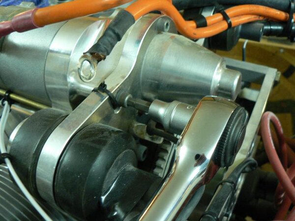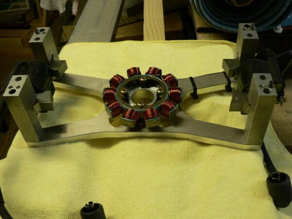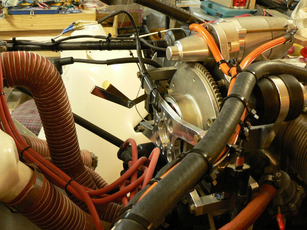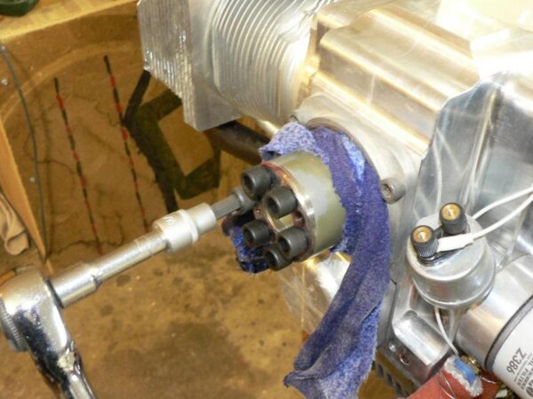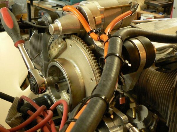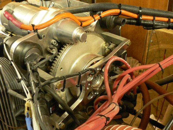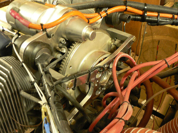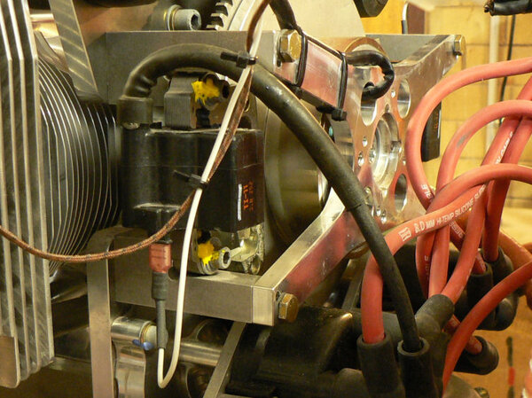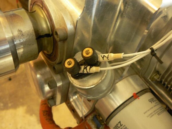 15-09-2008 Jabiru Engine Flywheel Attachment JSB 012-1 Replaced the alternator stator back in place with the mounting plate stand-off roll pins lined up with the matching holes in the engine backing plate. Then gently tapped the alternator mounting plate with a light soft hammer on each corner until it was seated on the engine backing plate with the alternator stator back inside it's ring and each roll pin in both of their matching holes. Reinstalled the alternator mounting bolts with Loctite 620 on the threads after cleaning them with Loctite 7471 and tensioned them to the backing plate through the standoff brackets. Reinstalled the port top engine mounting fittings and bolt after doing the stand-off bolts. It was found that the port side ignition coil was just fouling one of the permanent magnets on the flywheel. It could be rotated but was just touching the magnet as they passed. So in turn each pair of ignition coil mounting cap screws were loosened off to allow the coils to magnet gaps to be adjusted and set. Because of the heavy magnetic pull of the magnets on the iron cores of the coils the non magnetic soft feeler gauge needs to be inserted in the required gap space before the coil is allowed to move towards the magnet. A soft feeler gauge also allows the gauge to conform more closely to the curved space between the magnet and the ignition coil body. As I only have one such gauge (two would be preferable) the end of the coil without a feeler gauge blade was only slackened enough so that it could rotate when the other end was adjusted. So it took a couple of tries to get both ends of each coil gap to magnet within the allowable range from 0.010" to 0.012" or metric 0.25 mm to 0.30 mm gap. [ATTACH]6512.vB[/ATTACH][ATTACH]6513.vB[/ATTACH][ATTACH]6514.vB[/ATTACH][ATTACH]6515.vB[/ATTACH][ATTACH]6516.vB[/ATTACH][ATTACH]6517.vB[/ATTACH][ATTACH]6518.vB[/ATTACH] Once the gaps were set the cap screws were tightened up, checked again then marked with "Torque Seal" to make any looseness obvious on visual inspection. All the disconnected leads were reconnected to the distributors, wiring harness and the removed cable Zip ties replaced to secure the wiring. To make it easier to rotate the engine and check the gaps and make sure there was no fouling of the magnets or coils a spark plug was removed from each cylinder which was replaced at the end of the adjustments.