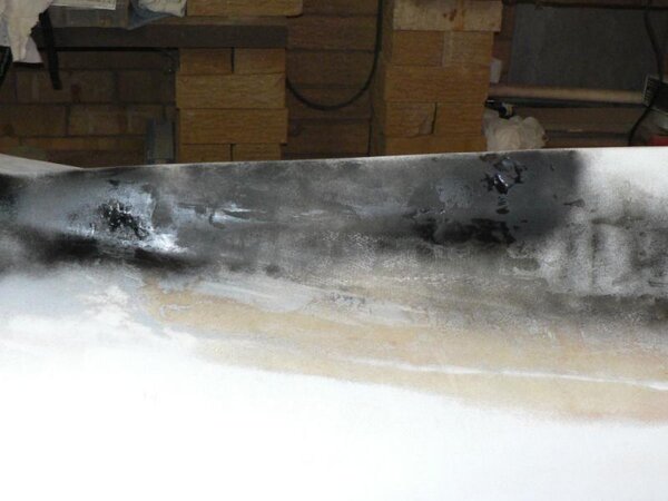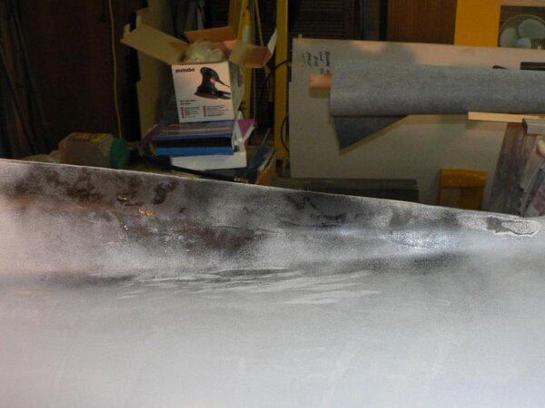 01-09-2008 Used orbital sander with #400grit sandpaper to rub down the fill areas on the cable guide access holes and the wing fill for the damaged fill on the wing tip as done on the 9-08-2008. After the rough fill was initially rubbed back with the orbital sander it was then sprayed lightly with black satin paint in a pressure pak. It was then rubbed back some more by hand and using the orbital sander using the paint to expose high spots and low spots. I only did one side of the top of the cable guide access fill as I had the spray can too close when applying the first lot and it also possibly appears to be a bit rougher than the other side. I will have another go at it tomorrow. At this stage most of the photographed areas can probably be spot spray painted with the two part bogging undercoat and repeatedly rubbed back until it presents a smooth base for the final coat. The pics show most of the fill surfaces after orbital sanding, then after a light coat of black paint, then after combinations of orbital sanding and hand sanding. [ATTACH]6354.vB[/ATTACH][ATTACH]6355.vB[/ATTACH][ATTACH]6356.vB[/ATTACH][ATTACH]6357.vB[/ATTACH][ATTACH]6358.vB[/ATTACH][ATTACH]6359.vB[/ATTACH] [ATTACH]6360.vB[/ATTACH][ATTACH]6361.vB[/ATTACH][ATTACH]6362.vB[/ATTACH][ATTACH]6363.vB[/ATTACH][ATTACH]6364.vB[/ATTACH][ATTACH]6365.vB[/ATTACH][ATTACH]6366.vB[/ATTACH][ATTACH]6367.vB[/ATTACH] The waste had to be rubbed off with a rag periodically as it was confusing the issue getting ground into non sprayed areas. Maybe I should have used the air hose instead of the rag.