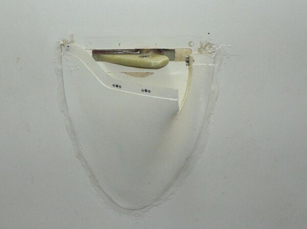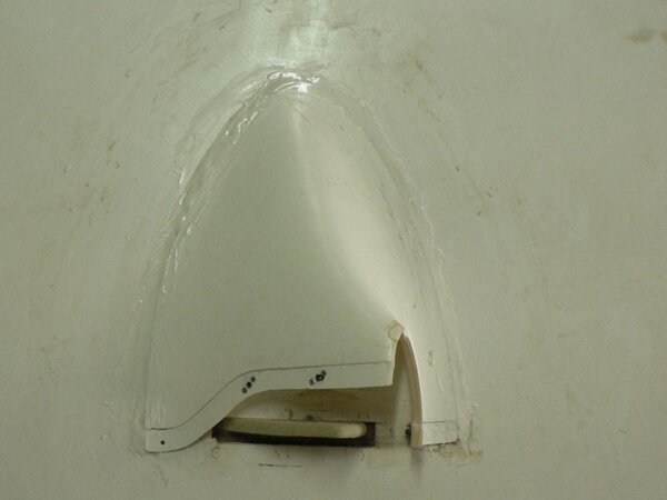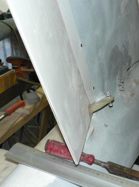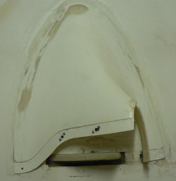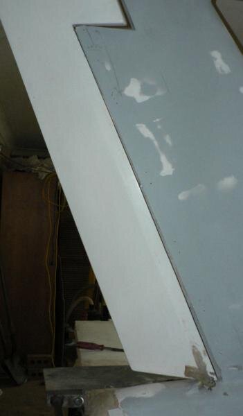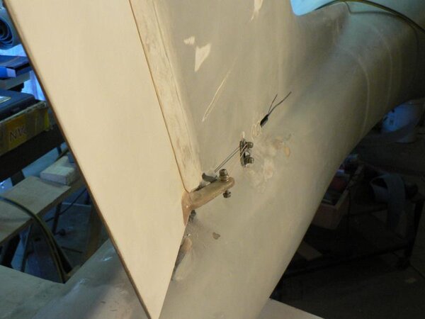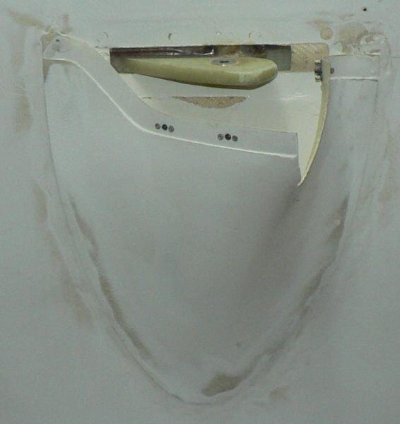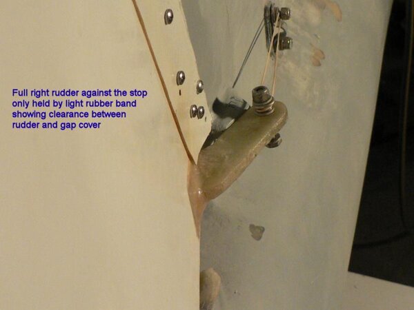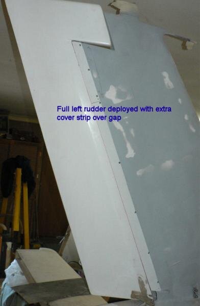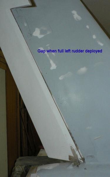 6-09-2008 There is a gap between the rudder and the vertical stabiliser when full left rudder is deployed. Prepared a strip of fibreglass to attach to RHS of AFT end of vertical stabiliser on opposite side of rudder hinges to close this gap when left rudder is fully deployed. [ATTACH]6406.vB[/ATTACH][ATTACH]6407.vB[/ATTACH][ATTACH]6408.vB[/ATTACH][ATTACH]6409.vB[/ATTACH][ATTACH]6410.vB[/ATTACH] The area under the strip will be stripped back to the fibreglass and the strip will be shaved down towards the leading edge and will be bent out slightly on its trailing edge after it is epoxied in place to clear the rudder when full right rudder is deployed. [ATTACH]6411.vB[/ATTACH][ATTACH]6412.vB[/ATTACH][ATTACH]6413.vB[/ATTACH][ATTACH]6414.vB[/ATTACH][ATTACH]6415.vB[/ATTACH][ATTACH]6416.vB[/ATTACH] The last two pics show the gap with full left rudder before fitting the extra strip. The rudder gap was aggravated by the necessity to move the rudder aft so that full right rudder could be deployed as the RHS of the leading edge of the rudder was being limited by the depth of the vertical stabiliser channel.