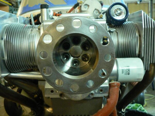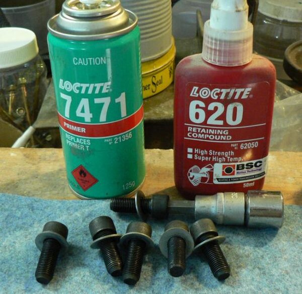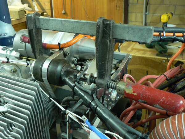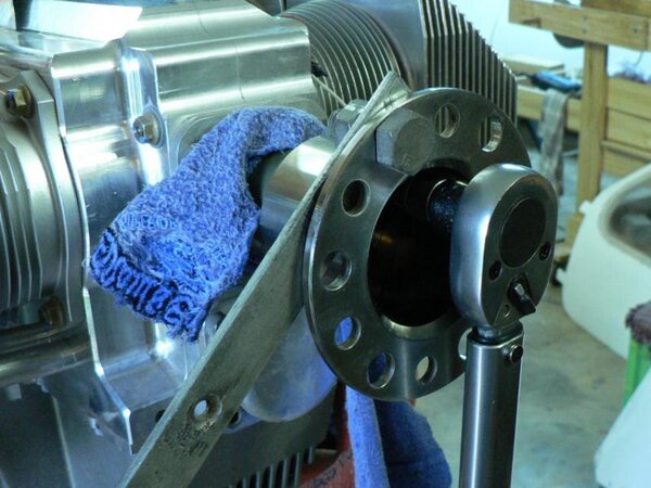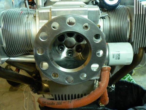 13-09-208 Prop Flange Cap screws JSB 022-1 The tapped holes in the crankshaft were sprayed out with Loctite 7471 then cleaned out again with the 3/8" UNF hand bottom tap to the bottom of the threads. The threads were then washed out again with Loctite 7471. The six new 3/8" UNF x 1" long cap screws were cleaned with Loctite 7471 as were the faces of the crankshaft, the propeller flange and both sides of the Bellville washers. After the cap screws and the holes had dried out the screws were assembled with the Bellville washers and some Loctite 620 (about a large match head size) applied inside the tapped holes and on the top of the thread of the cap screws. The six cap screws and Bellville washers were inserted by hand using the socket set through the propeller flange into the crankshaft. [ATTACH]6490.vB[/ATTACH][ATTACH]6486.vB[/ATTACH][ATTACH]6487.vB[/ATTACH][ATTACH]6489.vB[/ATTACH][ATTACH]6488.vB[/ATTACH][ATTACH]6491.vB[/ATTACH][ATTACH]6492.vB[/ATTACH][ATTACH]6493.vB[/ATTACH] Pic 1 shows the difference between the old and new set screws both with Bellville washers under the head with a piece of wood inside the flange to hold the screws up. They were then tensioned immediately in stages through 20 lb.feet, 25 lb.feet and 30 lb.feet working in a diagnal pattern around the flange to prevent distortion of the flange. As my tension wrench is calibrated in Newton Metres I had to do the calculation for the conversion before starting the cap screw tensioning.