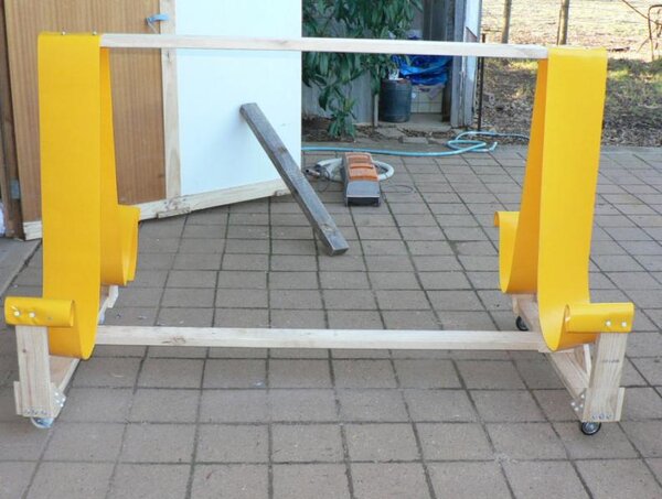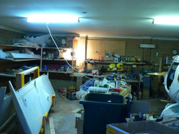 09-05-2009 I decided that I was in imminent danger of falling over too much stuff all over the place in my carport and possibly breaking a leg! So have started to reduce the clutter by making a wing stand instead of using the big box from Jabiru. I have also managed to get rid of a refridgerator and an old washing machine that was trapped in one corner of the carport and was almost impossible to get to. The yellow plastic is from the local tarp manufacturer and are left over strips from making tarps for railway wheat trucks. The length needs adjusting to get the wings approximately level. [ATTACH]5683.vB[/ATTACH][ATTACH]5684.vB[/ATTACH][ATTACH]5685.vB[/ATTACH][ATTACH]5686.vB[/ATTACH] Purchased a couple of extra doors to use as shelves to add to the old door that was already tying up a couple of saw horses. So those three were were attached to a wall with timber bearers screwed into the brickwork. Loaded that up with all the bits like fairings, ailerons, flaps, elevator. The doors are there now above it together with the struts although they were added after the pic was taken. Still more work to do there to make more working space and then actually do some work on the aeroplane.