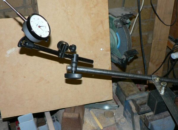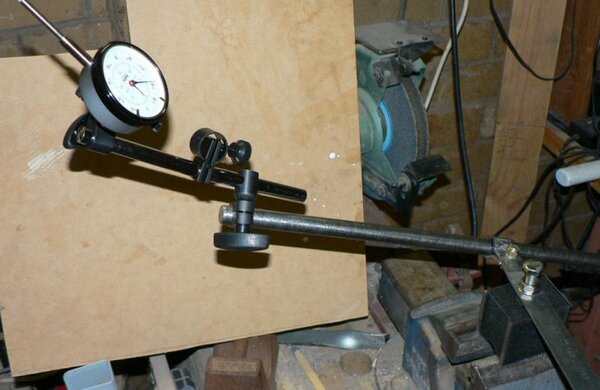 01-05-2008 Well the Brobenah fly at Leeton in is over with a reasonable attendance despite the weather and the Temora circus. I am waiting on some material from Bundaberg which I ordered in the middle of last week. A dial indicater with magnetic base ordered from interstate turned up earlier in the week . Today I modified it by adding a longer arm so that it could be mounted on the front UC leg of the J160 to check out the prop layup. I bit early yet for this job, supposed to be after paint. I could not find any bright 16 mm dia steel in Leeton so had to settle for black 16 mm with mill scale so Warren cleaned it up on his lathe and I made a clamp for the rod and assembled the modified parts to make it work. I discovered that the magnetic base had a shallow 10 mm 1.5 pitch coarse threaded hole in a box of Aluminium and managed to strip part of that thread. Loctite is a fairly useful material. [ATTACH]5608.vB[/ATTACH][ATTACH]5609.vB[/ATTACH][ATTACH]5610.vB[/ATTACH] The extended leg og the main support shaft allows for a bit of counterbalance to the weight of the shaft and the dial gauge. Later on I will probably cut off the head of the fully threaded SS bolt and make it a permanent fixture on the magnetic base.