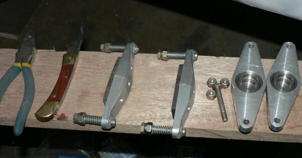 4-04-2008 The flocked clamps done yesterday had not cured during the night due to cold temps so I have set the heater up today to get them cured. Shall see what happens. See what happened below at 23:08 hrs. Decided the door hinge bolts holding the hinges to the fuselage were a bit light on considering that Jabiru have changed the hinges considerably since my kit #14 and I had busted a 5 mm SS cap screw when attaching one door. The dia of a 5 mm 1 mm pitch metric SS bolt is pretty small so a 6 mm bolt is a big increase in minimum cross sectional area. my kit had 5 mm capscrews holding the hinges to the fuselage so there was just enough room to change the original 5 mm 1 mm pitch metric SS cap screws to 6 mm 1 mm pitch SS hex head bolts. So drilled the hinges to 5 mm (the tapping drill size for 6 mm 1 mm pitch bolts ) and tapped them to 6 mm 1 mm pitch thread and bought 6 mm 1 mm pitch metric SS bolts and SS washers to match. [ATTACH]5474.vB[/ATTACH] Pic shows the new bolts and the freshly tapped hinges to 6 mm 1 mm pitch SS. The pic shows the replacement 6 mm bolts & washers as well as a 5 mm 1 mm pitch SS Hex bolt in the pic although the supplied bolts were capscrews 5 mm 1 mm pitch cap screws not shown in the pic. 23:08 hrs :ah_oh: Just figured out why the second leg clamp did not cure - instead of adding 3 parts resin plus 1 part hardner I had added one more part resin instead of hardner. So have turned off the heater and tomorrow I will remove the leg and clamp, clean off the mixed resin and flock and clean it with acetone. Then will mix up some resin plus hardner apply it to the clamp and leg then mix the epoxy with flock apply it to the clamp and reinstall it.