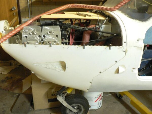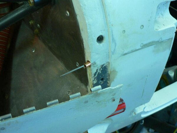 29-05-2008 Drilled out the rivets holding the piano hinges to the bottom cowl and prepared them for flocking to the cowl. This is not the method according to the new Jabiru construction manual and I don't recommend it. Prepared the hinges with emery cloth and acetone also the matching area on the cowl. Applied mixed resin to the cowl join area and then mixed flock into the remaining resin and applied a thin layer to the piano hinges. Fitted the piano hinges to the cowl pulling it in with 3/32" CSK pop rivets using 5 rivets on each hinge. Cleaned up any dribbling flock on the inside of the cowl and spread it along the bottom edge of the hinges. Cleaned up any flock intruding into the hinge holes on the top edge of the hinges. Also inserted the hinge pins making sure that any flock is not spread along inside the hinge holes. This will help to keep the alignment of the hinges. Marked out and cut the hole for the cabin air intake into the front of the cowl. Used a 29 mm hole saw and filed out the hole until the aluminium flange fitted in the hole. [ATTACH]5779.vB[/ATTACH][ATTACH]5780.vB[/ATTACH][ATTACH]5781.vB[/ATTACH] Used the flange as a template for drilling the rivet holes. The flange will be mounted inside the cowl - not outside as shown in the pic.