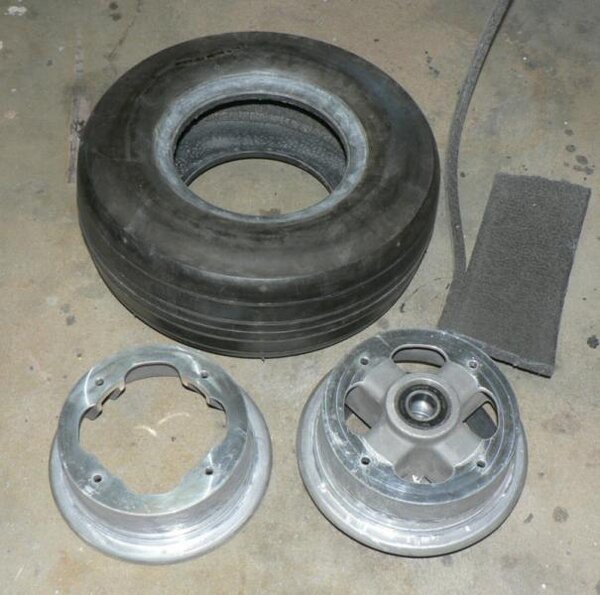 11-05-2008 This morning was different with the sun eventually burning off a fog. Discovered that my camera time was still on daylight saving time; duh it doesn't automatically change. [ATTACH]5690.vB[/ATTACH][ATTACH]5691.vB[/ATTACH][ATTACH]5692.vB[/ATTACH][ATTACH]5693.vB[/ATTACH] Removed a main UC wheel and inserted some sponge 100 mm wide in the tyre. Once I got the tyre off it was far easier than I envisaged. As the foam was readily compressible allowed an extra 20 or 30 mm length and pushed it in and seated well. No adhesive used. The 6 inch tyres have an outside circumference of about 44 inches or 1120 mm. [ATTACH]5694.vB[/ATTACH][ATTACH]5695.vB[/ATTACH][ATTACH]5696.vB[/ATTACH][ATTACH]5697.vB[/ATTACH][ATTACH]5698.vB[/ATTACH] Inserted the tube and partly inflated it to reduce the risk of pinching by the assembly process. Assembled the split rims to the tyre and remounted on the main UC. It is obviously out of balance once mounted on the axle and its own bearings. About sunset my wife said don't put tea leaves down the sink it blocks the grease trap and it overflows!!! Turns out the sump pump in the sump and 15 feet further down the line was not doing its job and the gauzed in area was now full of overflow from the sump as I had just back flushed the pool sand filter into the sump!
