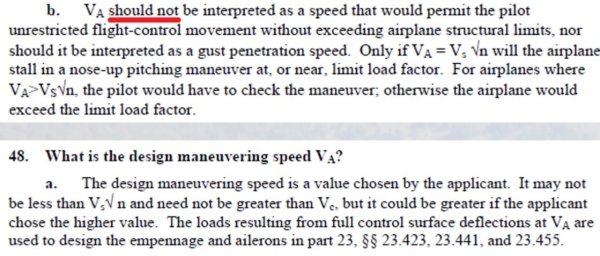 I get a steady stream of curious flight instructors asking about it when they can't get numbers to tie up when they do the arithmetic. Of course, they must use CAS - are those stall speeds in CAS or IAS? When the manufacturer does the calculations do they use the stall speed at the same CG published in the POH or not - some manufacturers publish stall speeds for both fore and aft CG positions. There are several reasons why a manufacturer may state a higher Va than Vs.sqrt(n). One is that they are allowing for future growth of that model so just do the certification once at the anticipated higher weight - as you saw, Va is only used to get control surface and tail loads, nothing to do with stresses in the wing. When an engineer first specifies Va it is before the prototype has flown so the stall speed is only estimated and perhaps the engineer builds in a buffer. Perhaps the actual stall speed is less than originally estimated. The structural engineering certification paperwork is largely done, they're not going to revise Va and delay the FAA's review if they don't have to.