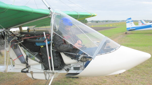 Hi all, a trip I did Guildford Vic to Maryborough Qld the rear controls removed the stick shortened and the windscreen to take the pressure of my neck and back , seat moved back as far as it would go for my long legs, jerry cans and push bike to ride into town for fuel and camping gear , what a buss, the shield had no adverse effect and added 5 knots to cruise at 60, hand held radio was held in a container attached to an ali frame at my elbow , 14.7 hrs ever 4 days up 15.2 over 3 days home,, had a ball.. Mark