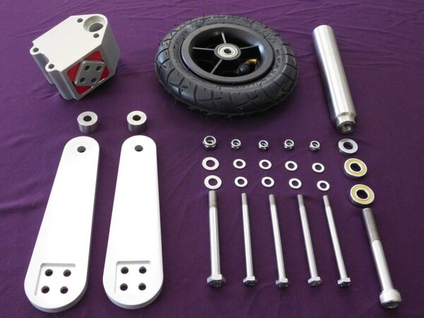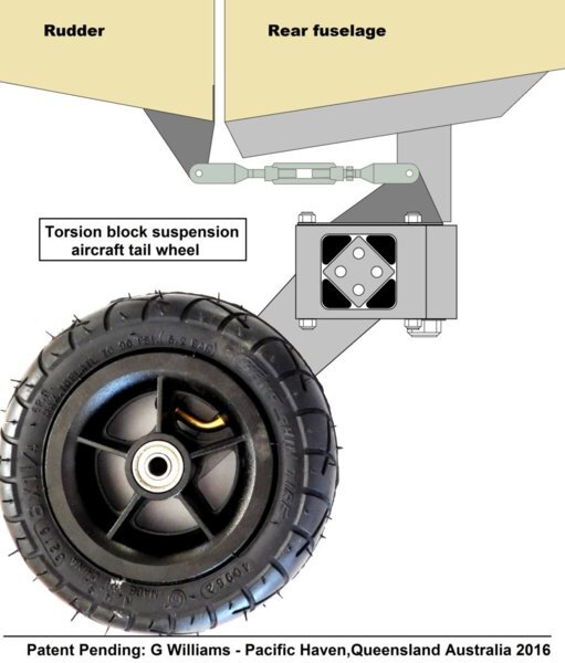 11. For any of you tail-wheel pilots here I welcome some feedback on my Universal Maintenance Free Tail-wheel. Specifications are: CNC machined 6061-T6 billet Torsion block and axle with polyurethane compression bars CNC machined 6061-T6 billet wheel cheek plates 316 stainless steel mounting shaft 2 x sealed 316 stainless steel case bearings with ceramic balls for pivot in torsion block All bolts are 316 stainless steel 6" x 1-1/4" pneumatic wheel with 2 x sealed 316 stainless steel bearings and black alloy rim Total weight as shown in photo is 1.68kg Graeme