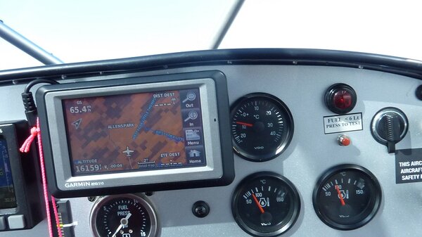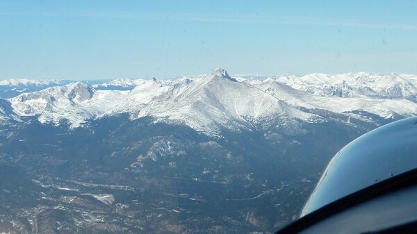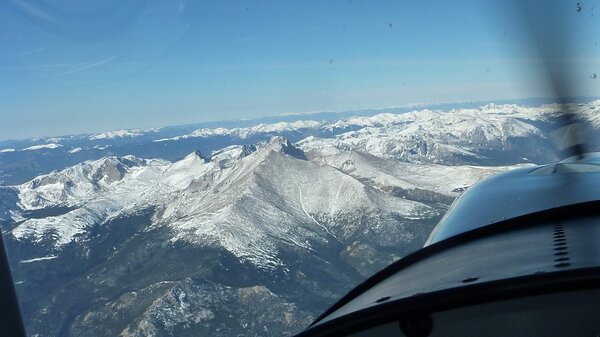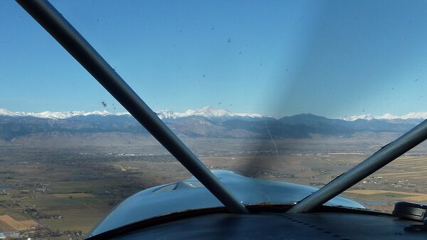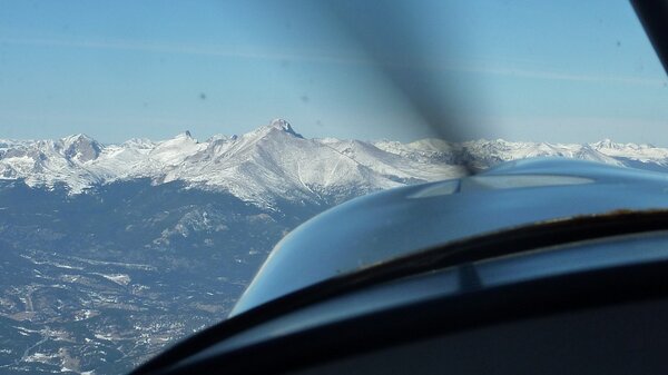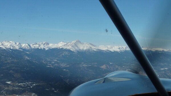 Just for fun, I flew my Savannah VGW/XL from Erie, CO (KEIK) to Longs Peak located inside the Rocky Mountain National Park in November 2011. The plane has a 100 hp Rotax 912 and flight weight was about 1150 lbs(523 kg). Longs Peak is only about 40 miles from Erie but it is 14,259 feet (4,346 m) high. Erie’s elevation is 5130 feet. The winds were calm and the temperature was 50F (10C) when I departed. It was a beautiful day for flying. I had a great idea of documenting the airplane performance by taking pictures of the gages during the flight. Shortly after takeoff, I realized I could make the pictures show just about anything just by choosing the instant to click the picture. So, to believe the pictures, you are going to have to have a little trust. I really did try to snap pictures when the gages were showing “fair” numbers. I used wide open throttle all the way up to 16,000 feet. The tach started at 5400 rpm (during climb) and gradually decreased to 5200 at 16,000’. I climbed at about 65 mph (105 kph) indicated. This yielded a climb rate of about 700 fpm at 5500 feet and about 100 fpm at 16,000 feet. Cruise speed at 16,000 feet (temp was 18F or -8C) was about 68 mph indicated and about 90 true. Longs Peak in the distance Wide open throttle at 12650 feet Longs Peak - Rocky Mountain National Park 13,650 feet - 4160 m Slow moving - 20 mph headwind Finally getting closer Everything normal at 15,100 feet - 4602 m Out the window at 15,000 feet Still climbing at 15,940 feet - 4846 m Temperature at 16,159 feet is 18F/-8C Level - WOT - true airspeed ~90mph/145kph A closer look Now for the fun part(suggested by John Gilpin), after circling the mountain, I headed back to Erie, still at 16,000’. Power slowly to idle, let the engine cool awhile, mags off, slow to 50 mph and the prop stops. Instance silence and better yet the plane does not fall out of the sky. Erie was about 15 miles away when I shutdown the engine. I descended at about 60 mph and around 600 fpm. I arrived over the airport at ~8000’ feet, made three 360’s and slipped about 500’ to land on the first half of the runway. I logged about 20 minutes of prop-stopped time. Absolutely exhilarating. I cannot seem to get this big smile off my face. Tach to zero 15 miles to home with the prop stopped