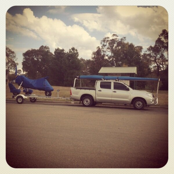 Here's my set-up, Jacko. Roof-racks on the top, ladder racks on the front and back, and two lengths of timber underneath to give a flatter surface while on the road: -