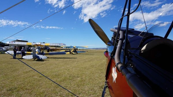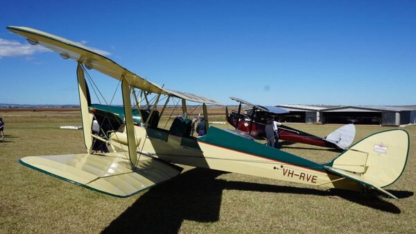 Arrived at the field around 9:30am on a calm and clear morning, the club meeting was scheduled for 10:30am after morning tea. We were expecting a flight of Tiger Moths to arrive before midday and as it was mentioned in the local paper, people started arriving to see them. ANZAC day is a busy day for flypasts and on my way out the the airfield I saw a formation of aircraft heading south towards Warwick, looked like some T-28's plus other types. Later we had a formation of 3 Tiger helo's along with 3 NRH-90 heli's fly over, heading across to Clifton. Trevor had us all looking in the direction of Allora at 10:30am.......nothing came our way ,a F-18 was planned to flyover but we never saw it! After a quick meeting I managed to squeeze in 40 minutes in the club Drifter before the BBQ lunch and while the tiger's were arriving in the circuit. I had plenty of judges for my landing, I was happy it was a "greaser"! A number of the visitors had trained on Tiger's and came out to rekindle the memories. Here are some photos, quality of workmanship on these aircraft is outstanding.