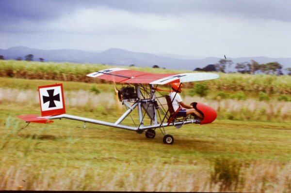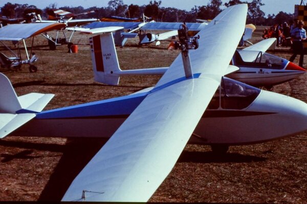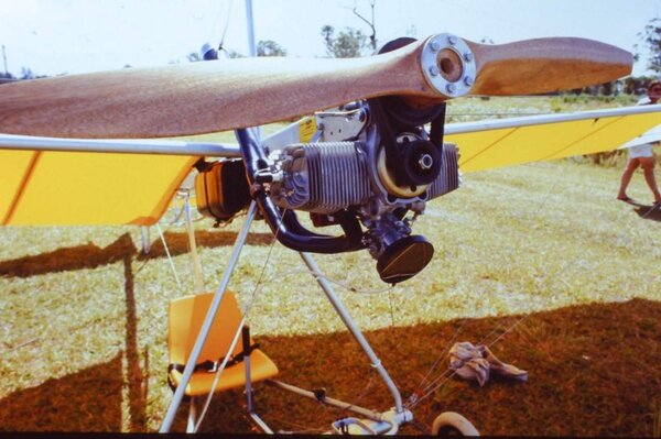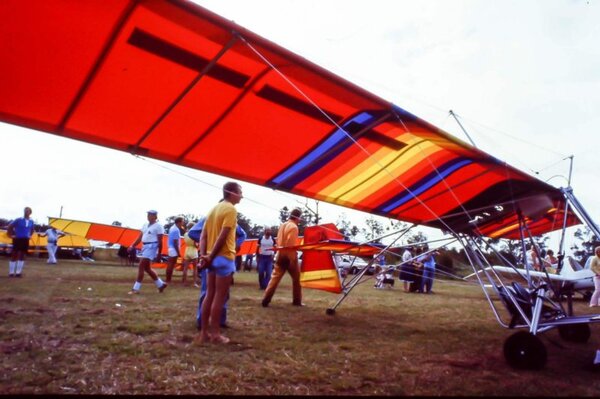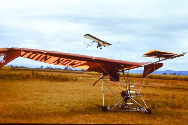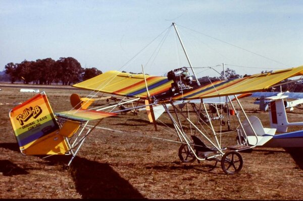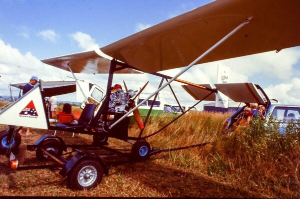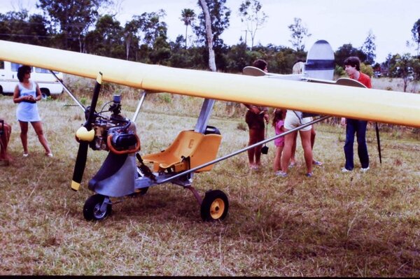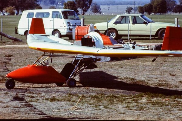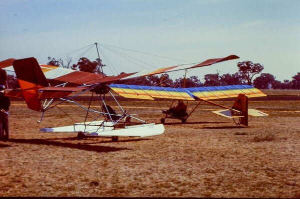 Not in Australia, but here are some photos I took at Oshkosh 79 down the southern end where the ultralites were starting to lose the legs for wheels! Craig Catto of Catto Props designed this canard, just a big model aircraft covered in model shrink film covering. Named after a big prehistoric bird! Easy Riser, still used the legs for a U/C! Basic Gauges, altimeter, Airspeed & ROC. Devoloped from rigid wing hang gliders. Some RC models now have bigger motors than this! From memory I think the pilot had a wipper snipper style motor and shaft attached to his prone harness with a folding prop behind his feet! Definitely a Dreamer... New model..lets listen to the sale pitch.... Early Mitchell Wing....good flyers... Ultralight central! ...how many gallons per hours does she chew buddy...... Redundancy is always good! Shade is always good too! Early Weed Hopper I believe....not much higher than the weeds....... -