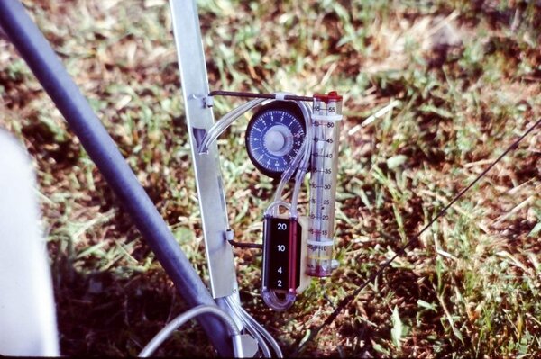My 3 axis Pegasus canard on the first Gold Coast Ultralight club field behind Jacobs Well (about 2km south of the current Hecks Field). This would be in 1981. Col Winton test flying a new Sportsman at the Jacobs Well field, again 1981. Low flying was almost the norm back then..... A Scout, Jackaroo and Col in the back with the Sportsman. Too long ago, name of pilot alludes me. Resurgam, again don't recall the owner's name. The panel on my Pegasus. This aircraft was a cheaper copy of the American Aerolights Eagle XL. Due to legal action in the states over the copies, a shipment of aircraft to Aussie customers came up short on parts. I did not get a full kit of parts but then I never paid the full price in the end. Luckily I ended up with the major items and needed to only fabricate some control cables and joystick assembly. I had a lot of help from Brian Gane of Torquay Vic. Brian was I think the first to get his Pegasus assembled and flying. This was his machine. Wayne. -