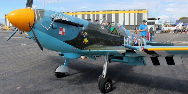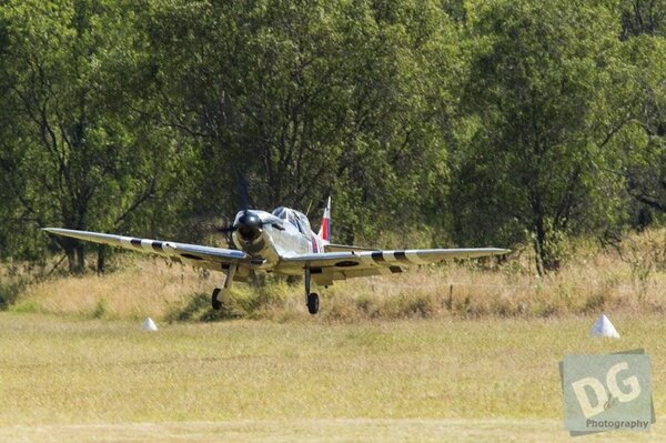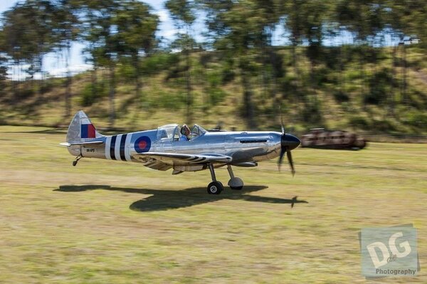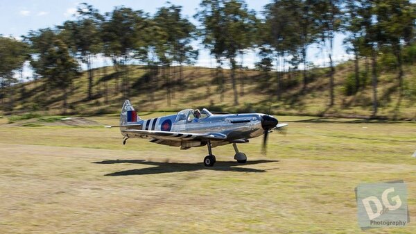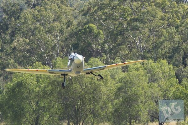 Agree, that shows what appears to be the left hand flap extended. However in the photos I've attached you can see, when the flap is extended it runs along a lot of the wing, out past the replica gun and is mostly painted black and white. In the video (and the photo you have attached) the flap appears to be inside the replica gun and I can't see any black and white paint.) It could be the angle the video is taken from that that makes the right wing intake scoop (see first photo I've attached) make it look like a flap.
