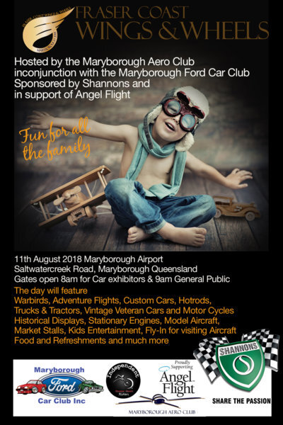 Fraser Coast Wings and Wheels Event. Saturday 11th August Maryborough Airport and Harvey Bay Seafood Festival Sunday 12th August. Here is a action packed weekend or day Flyin event worth considering. Maryborough Aero Club are happy to provide a breakfast for those who are coming along and where possible will provide transport to and from your motels. Karen, events co-ordinator, suggests we could otherwise use the local taxi service that wouldn’t be very expensive as the motels she recommends are literally only a couple of minutes drive down the road. Maryborough Motels that Karen is recommending are McNevins Motel Maryborough 188 John Street Maryborough Email: [email protected] Phone: 41 222 888 and Best Western Kimba Lodge 177 John Street Maryborough Phone: 41 233 999 Both of these are in the same area and are actually straight across the road from each-other. Please let Karen know if you would like to attend the Spit Roast dinner, on the Saturday night as there will be limited seating so she would need a firm number by 1st August. Cost for the Spit Roast dinner is $30.00 per person. Karen is not sure on the cost for the breakfast as yet but will probably be somewhere between $10 and $15 per person Confirm your attendance and dinner bookings for the Wings and wheels event with Karin Middleton, ASAP. 0429 111 260 For those interested in the Harvey Bay Seafood Festival, we will fly over to Harvey Bay airport and book a Maxi Cab to enjoy the food and atmosphere of this yearly festival