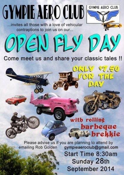 Gympie Open Fly Day, was well attended and catered for by the Gympie Aero Club, locals, car and bike enthusiast alike enjoyed taking to the air over Gympie and showing off their machines to us all. A Great Day, photos says it all.